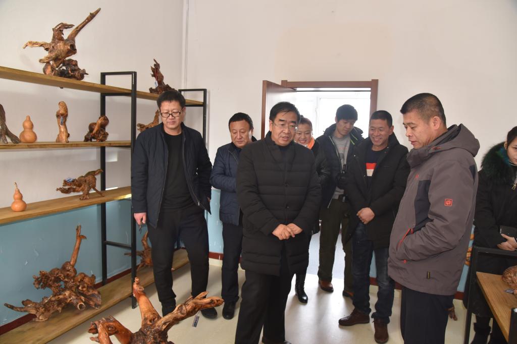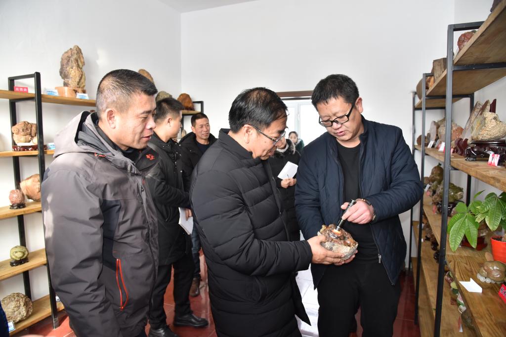 随后,肖长旭详细了解了穆棱红奇石根雕艺术馆暨奇石根雕交易市场建设项目推进情况,并在穆棱石木协会会长赵金保的带领下参观了奇石、木雕展厅和玉石加工坊。肖长旭表示,随着人们精神文化生活水平提高,人们对玉石与根艺的认识也进一步加深,促进了其加工产业的兴起。这些玉石、木雕产品,取材于马桥河,是自然天成的物品,表现的东西灵动而富有个性,以无言的表达,带给人们感悟与舒适。我们要充分利用好马桥河的地质资源,与文化旅游产业有效衔接,精心打造发掘,把原生态石木的美发掘出来,赋予其生命力。