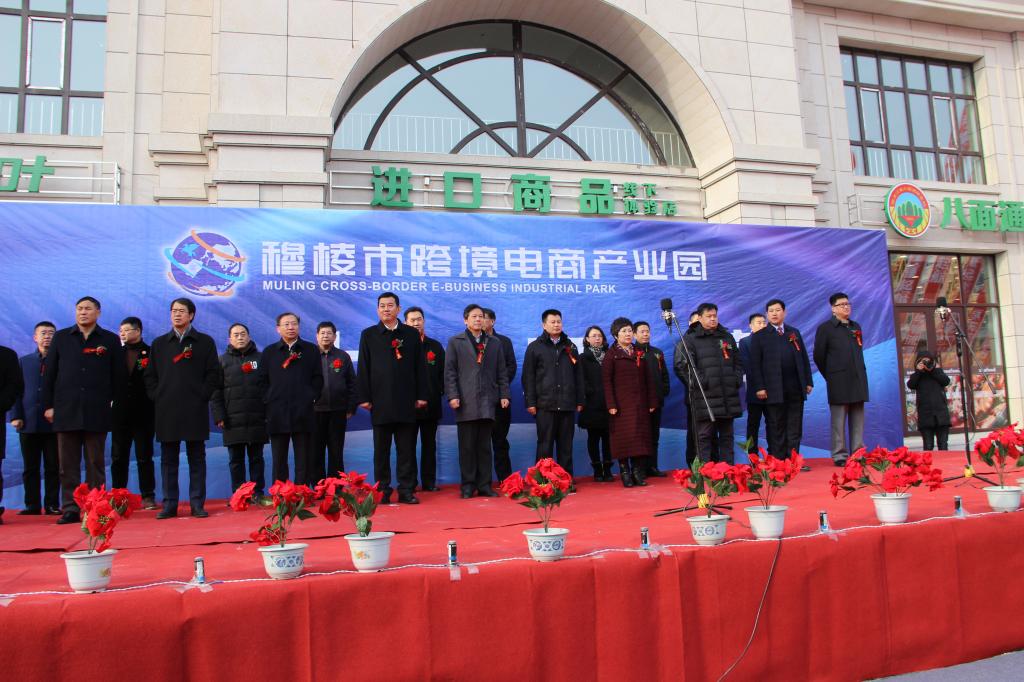 12月5日上午,穆棱市跨境电商产业园正式启动。参加启动仪式的各级领导有:黑龙江省商务厅副厅长车跃,中国电子商务协会副会长唐生,牡丹江市委常委、秘书长赵荣国,省商务厅电子商务处处长田晓宁,牡丹江市人大副主任黄莲花,牡丹江市副市长齐忠彦,牡丹江市农委主任吴永奎,牡丹江市商务局副局长郑廉,牡丹江市双创办常务副主任李志良,牡丹江团市委副书记赵岩,穆棱市市委副书记、市长王志刚等;穆棱市四大班子主要领导,市委、市政府相关部门主要领导共同参加;中国电子商务协会跨境电商经济促进会、北京穆棱商会、中国网库总部、浙江京华经合局、省科学院等社会团体及单位受邀参加。启幕仪式由穆棱市委市委副书记惠金山主持。