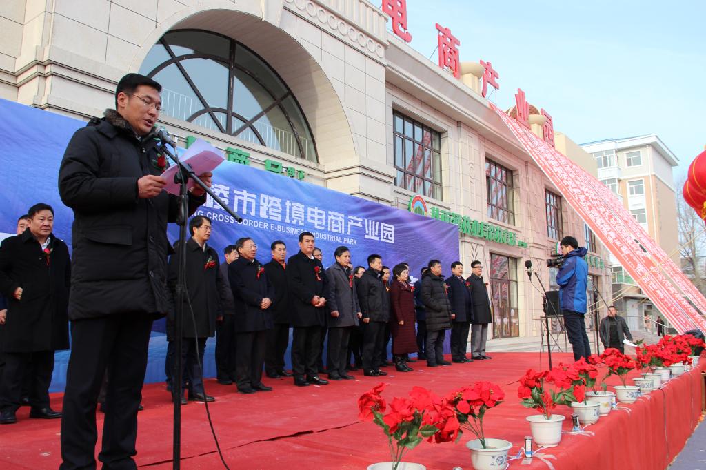 在启幕仪式上,中国电子商务协会副会长唐生,穆棱市电子商务协会会长、跨境电商产业园董事长徐连海分别致辞。随后,唐生向徐连海、魏达授牌,穆棱市跨境电商产业园被授予“中国跨境电子商务专委会副理事长单位”、“中国跨境电商示范基地”、“中国电子商务协会跨境电子商务专业委员会穆棱市联络办事处”。最后,主席台上的省市级各位领导一同按下启动仪,共同见证这一重要时刻——穆棱市跨境电商产业园正式启动运营。