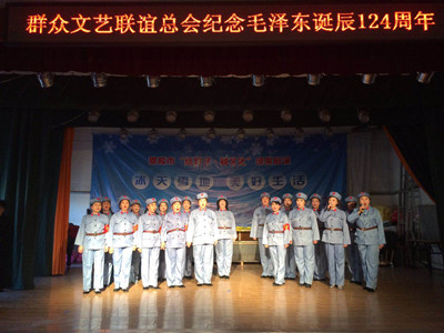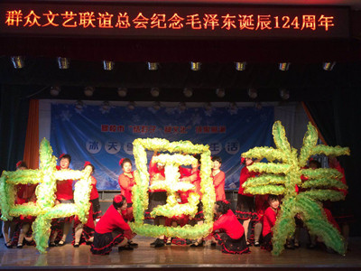12月26日下午,为纪念毛泽东同志诞辰124周年,头雁社区友谊歌舞团兼合式党支部在市文化馆举行“纪念毛泽东同志诞辰124周年”文艺演出,表达对伟人毛泽东的追思和缅怀。
