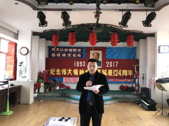 “毛主席窗前一盏灯,春夏秋冬长明”。12月26日,穆棱镇迎宾小区俏夕阳秧歌队和文化站不老松哥友团共同举办“纪念伟大领袖毛泽东主席诞辰124周年”感恩演唱会。穆棱镇镇长史庆文、文化站站长王威参加。